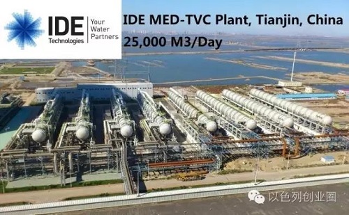 中國方面,IDE將其視作一個極其重要的市場,并積極開展市場拓展。2009年,IDE與天津國投津能發電有限公司合作,為國投北疆發電廠海水淡化項目一期建造日產20萬噸的低溫多效海水淡化裝置項目。2011年項目竣工投產,是中國已建成最大的海水淡化項目,也是中國第一個向社會供水的大型海水淡化項目。2014年5月21日,中國副總理劉延東參觀了IDE設在以色列海德拉的海水淡化廠,并肯定了中國和以色列在水處理技術領域的巨大合作潛力,這加速了IDE在中國的擴張步伐。