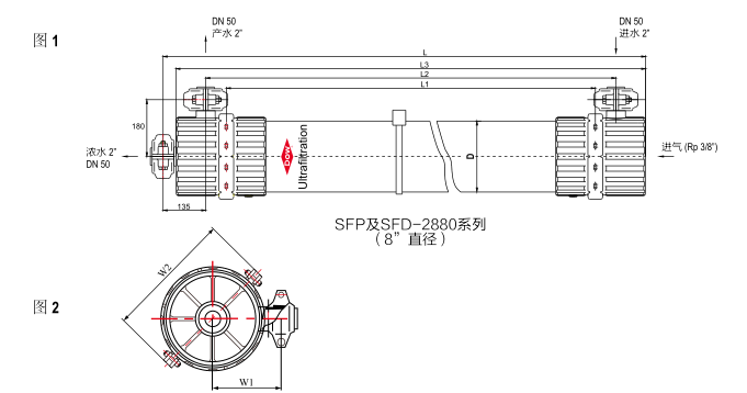 SFP-2880膜組件適用于流量在 50 m3/hr(220 gpm)以上的系統(tǒng)。